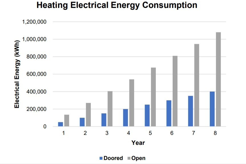 Figure 3: Graphs outlining differences in energy consumption for open and doored cases