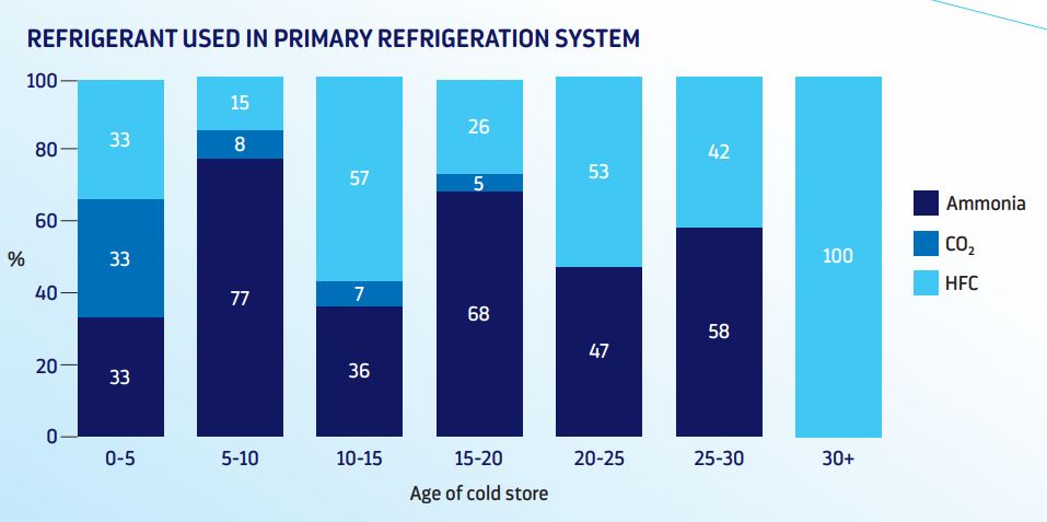 Finally one notable industry shift emphasized in the report is the transition away from ammonia towards carbon dioxide (CO2) as an alternative refrigerant in newer cold stores. According to data from the Cold Chain Federation, the use of hydrofluorocarbons (HFCs), ammonia, and CO2 is evenly distributed within the cold chain sector.
